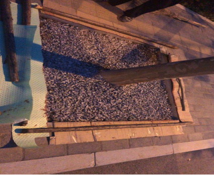 用麻袋或者鐵鍬將步驟3中攪拌好的成品移至鋪設區域內的碎石頭子上