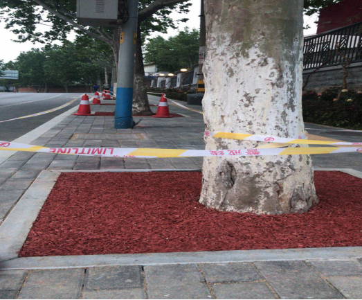 該應用方向優點在于,首先,可就地施工滿足不同尺寸行政樹穴要求,解決了不同樹木生長形態不同樹穴尺寸的城市樹穴整治覆蓋難點。其次,該應用方向利用有機覆蓋物作為基礎材料,實現了透水透氣的植物生長要求,最后,該項應用方向符合國家節能減排的號召,符合國家海綿城市建設要求。
